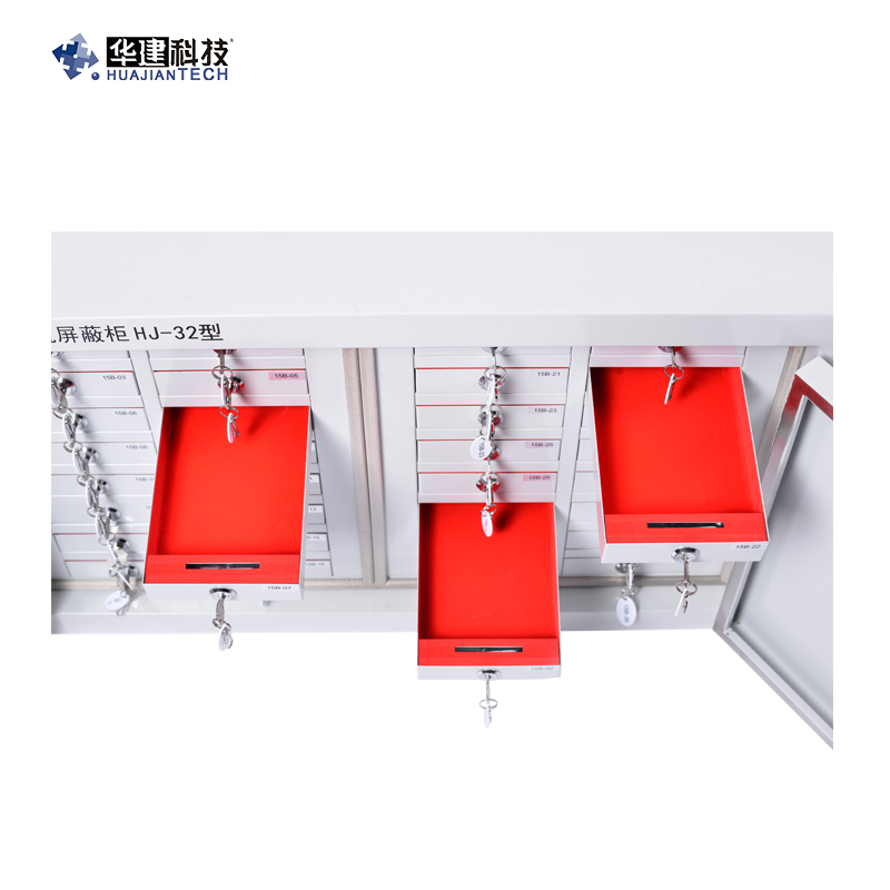 華建手機(jī)屏蔽柜采用嚴(yán)密的結(jié)構(gòu)設(shè)計(jì),內(nèi)部采用電鍍處理,表面靜電噴塑,具高耐磨性及防腐性,防輻射性能強(qiáng),屏蔽效能好,可有效抑制移動(dòng)電話信號(hào)的泄漏,并可同時(shí)存放多部移動(dòng)電話,每個(gè)抽屜采用安全式信箱鎖,獨(dú)立式管理。