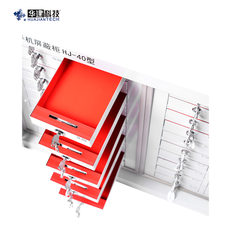 華建手機(jī)屏蔽柜采用嚴(yán)密的結(jié)構(gòu)設(shè)計(jì),內(nèi)部采用電鍍處理,表面靜電噴塑,具高耐磨性及防腐性,防輻射性能強(qiáng),屏蔽效能好,可有效抑制移動(dòng)電話信號(hào)的泄漏,并可同時(shí)存放多部移動(dòng)電話,每個(gè)抽屜采用安全式信箱鎖,獨(dú)立式管理。
